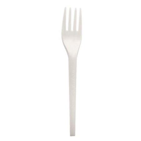 Tenedor fabricado con almidón de maíz CPLA puro, lo que le confiere una compostabilidad del 100% y una buena rigidez. Acepta temperaturas hasta 85ºC.