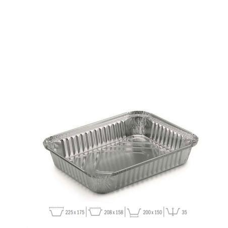 Envase aluminio rectangular 1125cc ideal para llevar o cocinar comida como lasañas, racione, ensaladas o asados. 1200uds