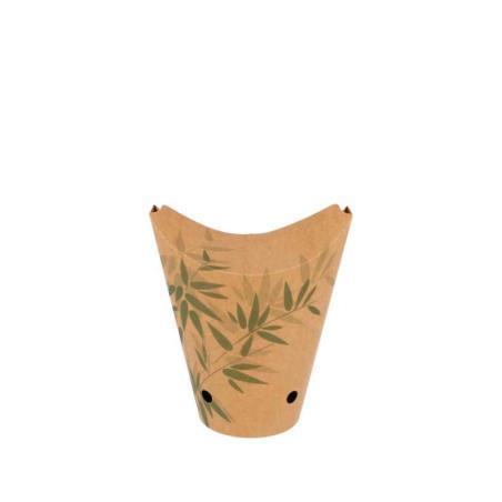 Vaso cartón para fritos Feel green 480ml con cierre fabricado en cartón kraft perfecto guardar comida e ideal para alimentos fritos debido a su resistencia a aceites y grasa. 1000uds