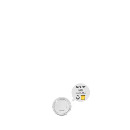 Farbicado en PET (tereftalato de polietileno) altamente transparente y muy resistente al desgaste. Es reciclable y apto para el contacto con alimentos.
