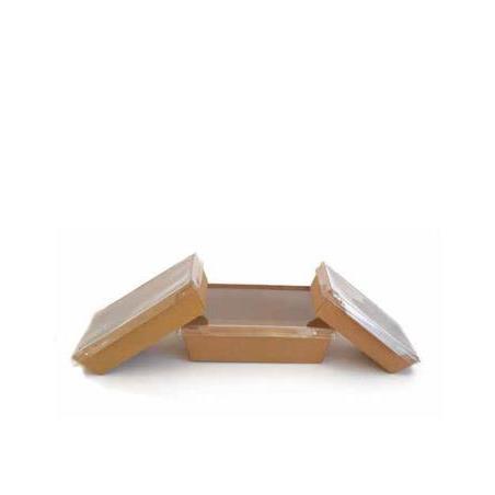 Ensaladera desechable cuadrada de cartón fabricadas en kraft de 2100ml. Estos envases son muy prácticos para transportar alimentos de todo tipo aunque son llamados ensaladeras también es apto incluso para alimentos calientes.